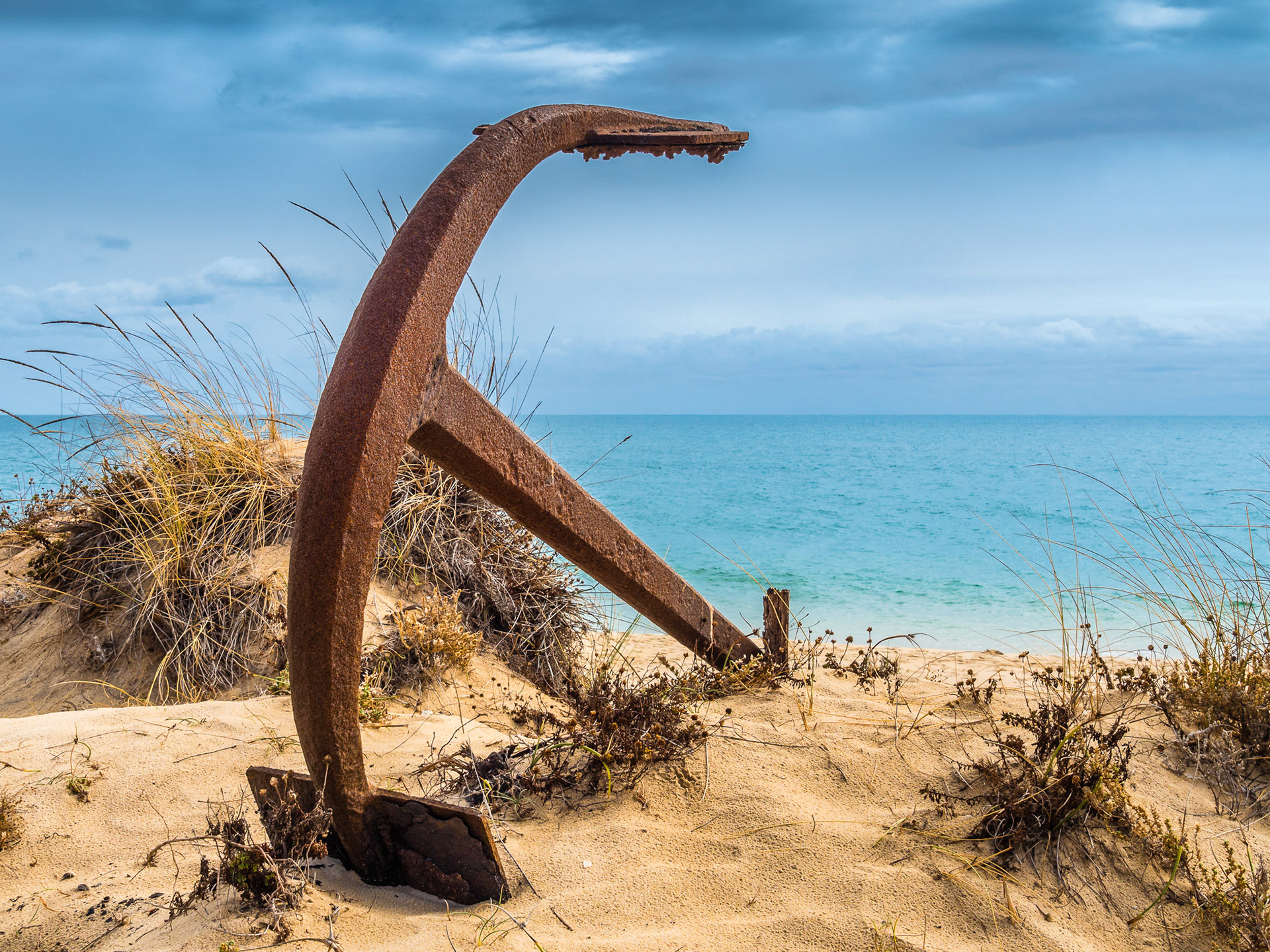 Natural Cemetery of Marine Anchors at Barril Beach, Portugal